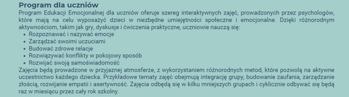 Edukacja Emocjonalna - harmonogram dla uczniów